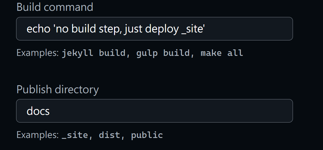 echo:echo 'no build step, just deploy'Publish directory : 請輸入 render 後的輸出資料夾(同